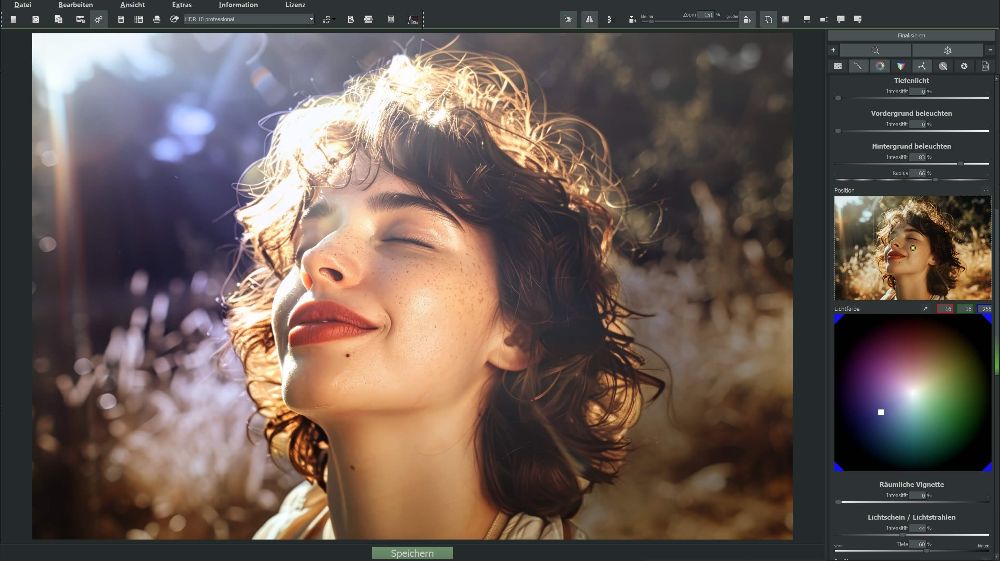 - Nachträgliche Berechnung eines Blitzlichteffekts mit wählbarer Position und Schattenwurf